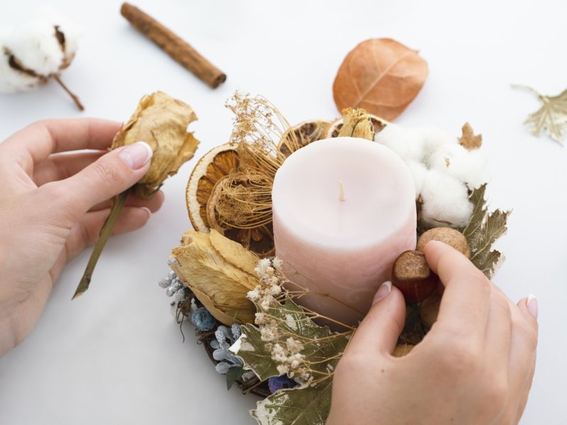 Ce se face: participanții lucrează cu ceară de soia, uleiuri esențiale și recipiente personalizate. Atelierul are loc într-un spațiu intim, cu miros de vanilie și scorțișoară.