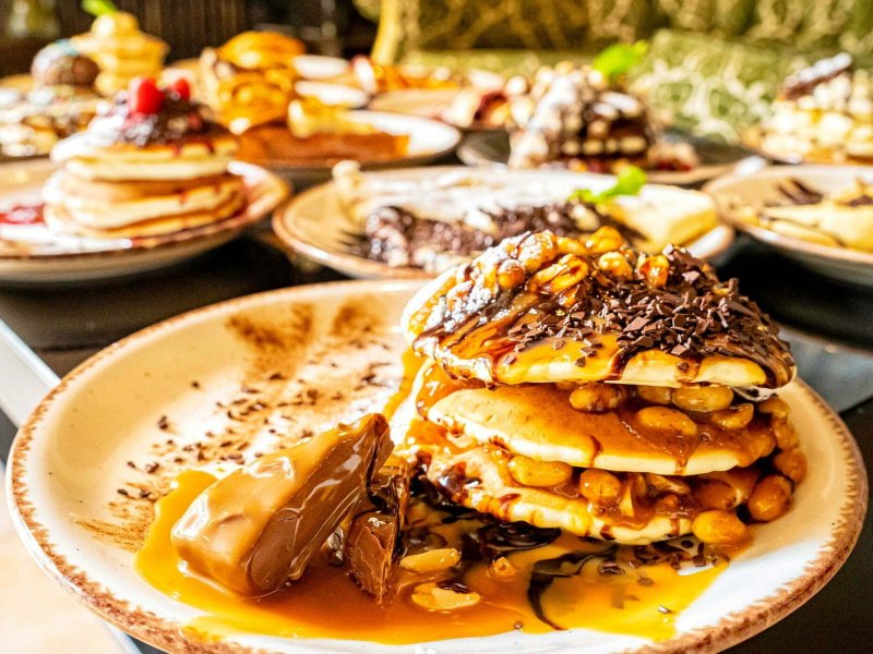 Brutal Pancakes funcționează într-un registru diferit față de conceptele clasice de clătite, orientându-se către pancakes americane dense, construite ca desert sau masă în sine. Accentul cade pe volum, textură și combinații intense, în care toppingurile devin parte centrală a preparatului.