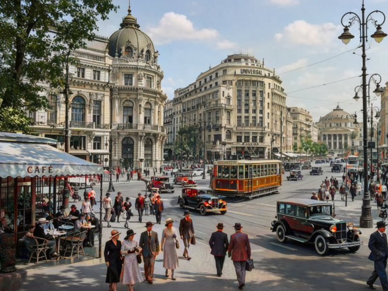 Calea Victoriei devenise simbolul acestei lumi. Vitrinele strălucitoare, traficul intens și mulțimea bine îmbrăcată ofereau imaginea unei capitale moderne. Cafenelele erau locuri de socializare, dezbateri și întâlniri intelectuale.