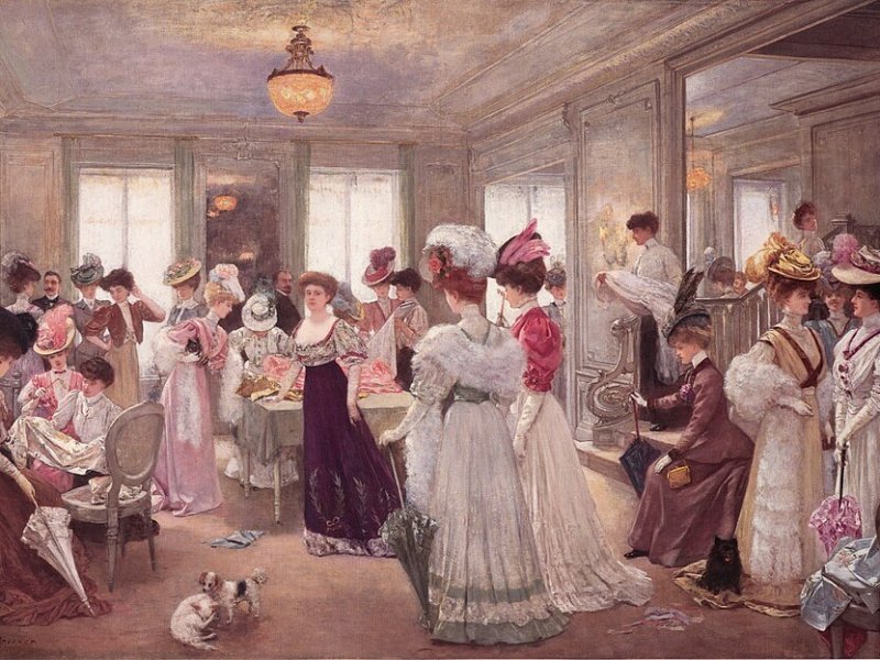 Magazinele de lux, atelierele de modă și marile prăvălii aduceau în București ultimele noutăți vestimentare din Occident. Revistele de modă circulau intens în cercurile aristocratice, iar croitoresele celebre deveneau personaje importante ale vieții mondene. Unele doamne preferau să își comande toaletele direct din Paris, pentru a fi sigure că nu vor apărea la același bal în aceeași creație ca altcineva.