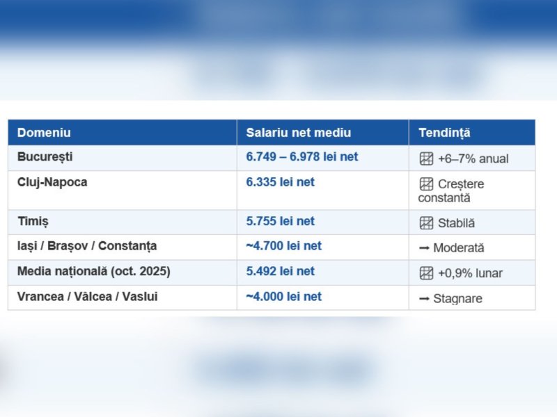 - Salariu mediu net | 6.978 lei | +6,2% față de oct. 2024