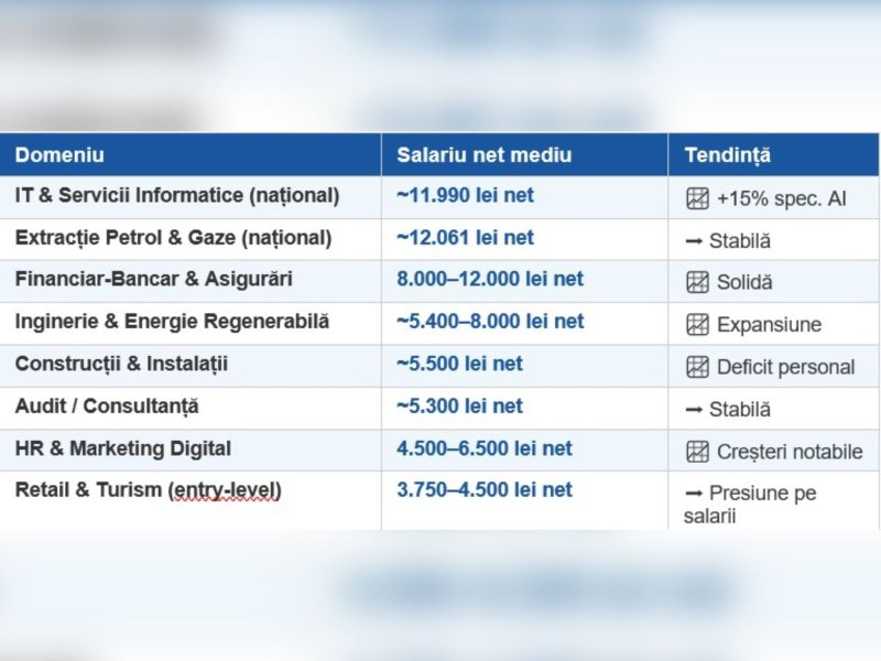 Ierarhia domeniilor bine plătite s-a stabilizat în ultimii ani, dar 2026 aduce câteva nuanțe importante. IT-ul rămâne lider absolut, deși creșterile s-au temperat față de perioada 2020–2023, odată cu eliminarea facilităților fiscale. Zona financiară câștigă teren ca stabilitate, iar meseria de inginer — mai ales în energie și AI — devine tot mai căutată.