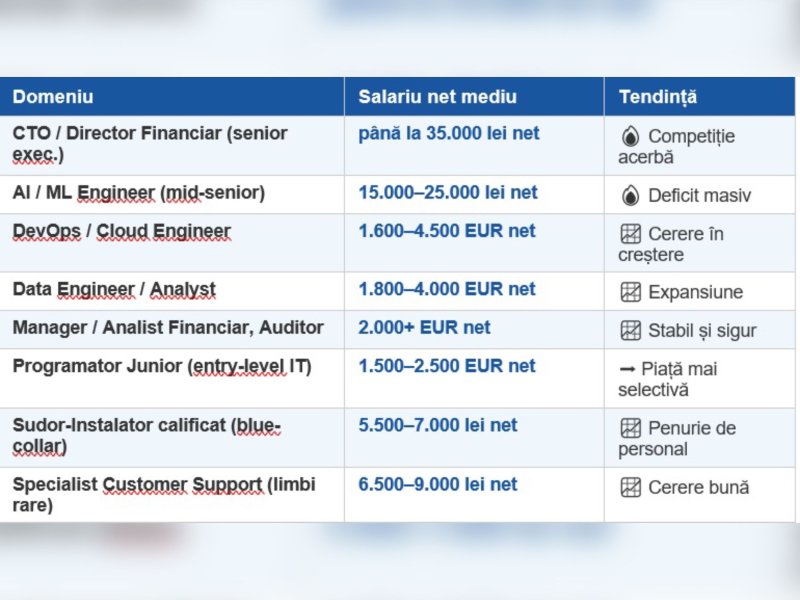 Vârfurile salariale din Capitală se concentrează în domenii tehnice de înaltă specializare. AI-ul și securitatea cibernetică au depășit în 2025 rolurile clasice de development în topul remunerațiilor.