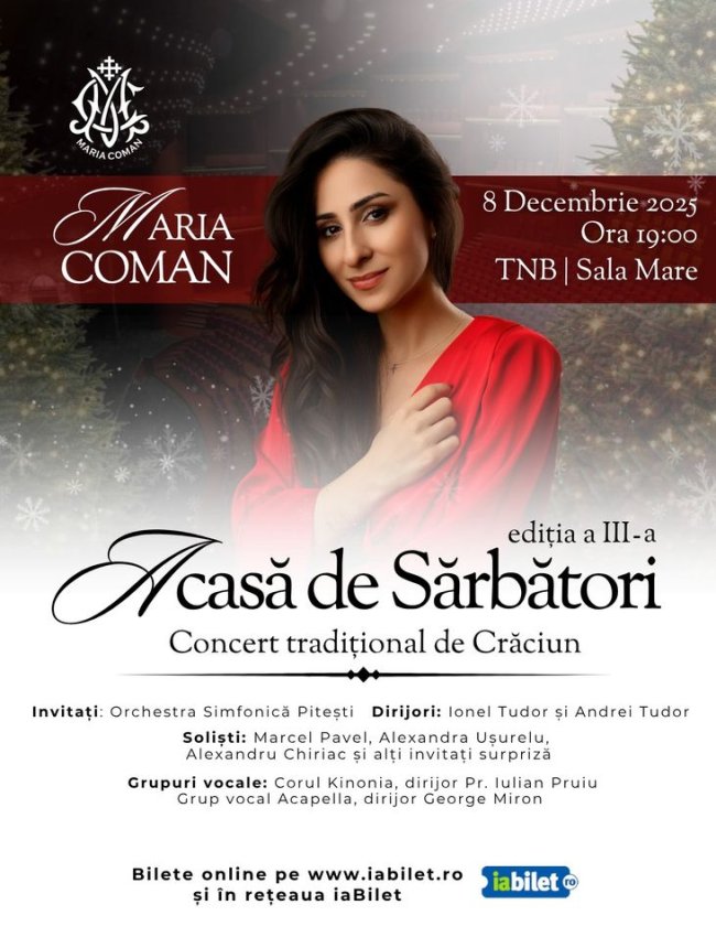 Ediția a III-a a concertului tradițional de Crăciun al Mariei, "Acasă de Sărbători " bate la ușă! Fii și tu parte din povestea ei, cu note bizantine și simfonice, accentuate de grație, feminitate și noblețea unei trăiri pline de profunzime!