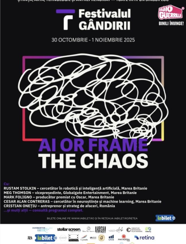 Pe scena festivalului, lideri internaționali din film, robotică, educație și business – printre care Meg Thomson, Rustam Stolkin, Mark Foligno, Cristian Onețiu și Viorel Chesaru – dezbat viitorul gândirii umane.