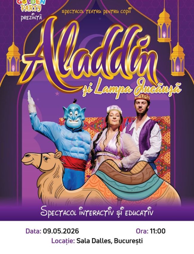 Cum se sfârșește povestea, ce alte întâmplări se vor mai petrece și ce dorințe i-a împlinit duhul lămpii lui Aladin, aflăm împreună în sala de spectacol! Va așteptăm să ne bucurăm împreună de universul plin de mistere și vrajă al lui Aladin.