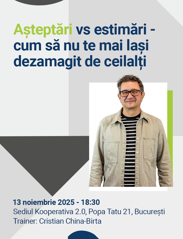 Cristian China-Birta declară: „Dezamăgirea este, de multe ori, un produs al propriilor noastre minți, nu al acțiunilor celorlalți. Prin acest workshop, vom învăța să setăm estimări clare, să comunicăm eficient și să ne gestionăm așteptările, transformând astfel frustrările în înțelegere și rezultate concrete.”