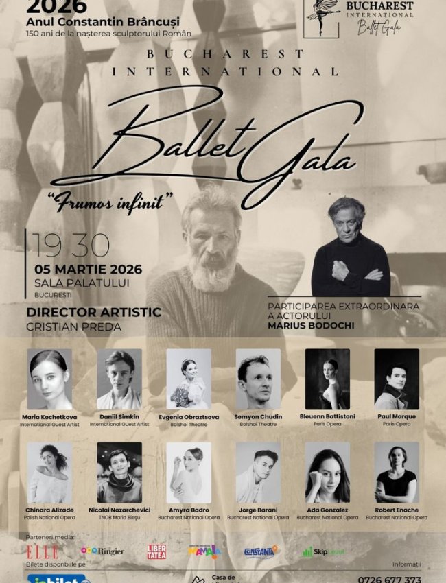 Pentru a onora moștenirea sa profundă, vă invităm la un eveniment de balet excepțional, în care dansul devine limbajul prin care operele și viziunea lui Brâncuși sunt reinterpretate scenic.