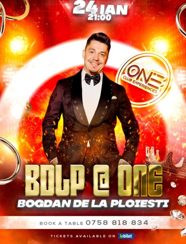 Evenimentul va fi o seară specială cu Bogdan de la Ploiești la ONE Club, pe 24 ianuarie, începând de la ora 21:00. Te vei bucura de muzică live și de o experiență de neuitat alături de unul dintre cei mai îndrăgiți artiști de manele din România. Biletele sunt disponibile pe iaBilet, iar pentru rezervări de mese, poți suna la 0758 818 834.