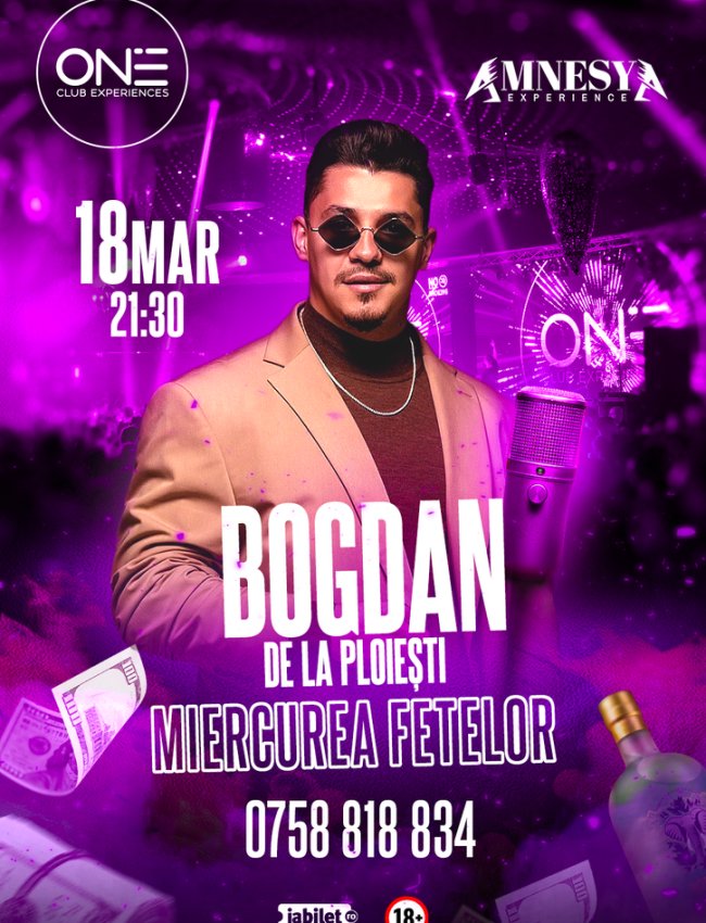 Evenimentul va fi o seară specială cu Bogdan de la Ploiești la ONE Club, pe 18 Martie, începând de la ora 21:30. Te vei bucura de muzică live și de o experiență de neuitat alături de unul dintre cei mai îndrăgiți artiști de manele din România. Biletele sunt disponibile pe iaBilet, iar pentru rezervări de mese, poți suna la 0758 818 834.