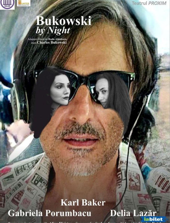 Bukowski by Night este un spectacol nonconformist, tranșant și brutal de sincer, ce explorează spiritul rebel și sensibilitatea emoțională acută a scriitorului american. Publicul este invitat într-un carusel de trăiri și confruntări, unde Art Legend (interpretat de Karl Baker) se zbate între iubire, dependențe, inspirație artistică nevoia de supraviețuire și mai ales libertate. Gloria (Gabriela Porumbacu) – artistă totală, excentrică și tulburătoare – și Alice (Delia Lazăr) – femeia-pansament, prietena și salvatoarea perpetuă – completează un trio intens, cu dinamici dramatice și tragi-comice, în care arta devine atât blestem, cât și salvare.
