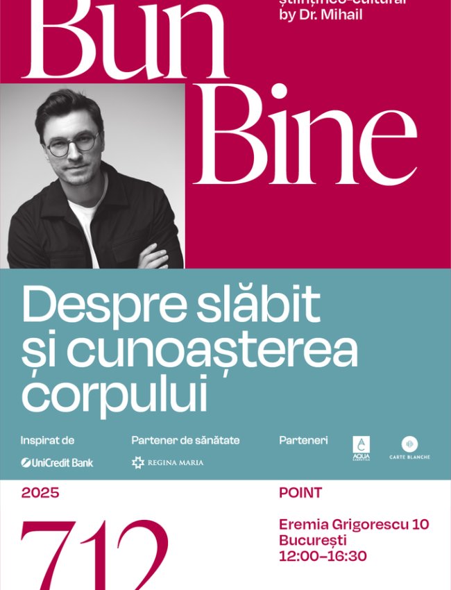 Sunt Dr. Mihail Pautov și te invit la o nouă ediție Bun Bine, un brunch științifico-cultural în care vei învăța cum să transformi lupta cu kilogramele în echilibru interior. Slăbitul nu înseamnă doar controlul alimentației, ci înțelegerea modului în care corpul și mintea lucrează împreună. Vom vorbi despre cum știința te poate ajuta să-ți asculți corpul, să-ți reglezi emoțiile și să construiești obiceiuri care chiar funcționează pe termen lung. Pentru că schimbarea reală nu începe cu o dietă, ci cu claritate, înțelegere și grija autentică față de propriul corp.