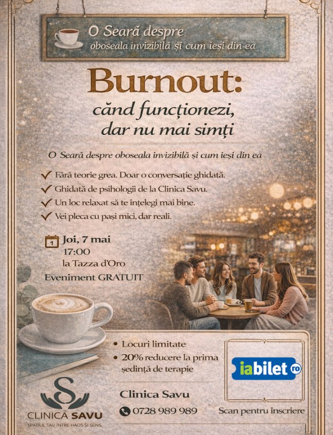 Întâlnirea va fi facilitată de specialiști din cadrul Clinica Savu, într-un spațiu sigur, empatic și non-judicativ.