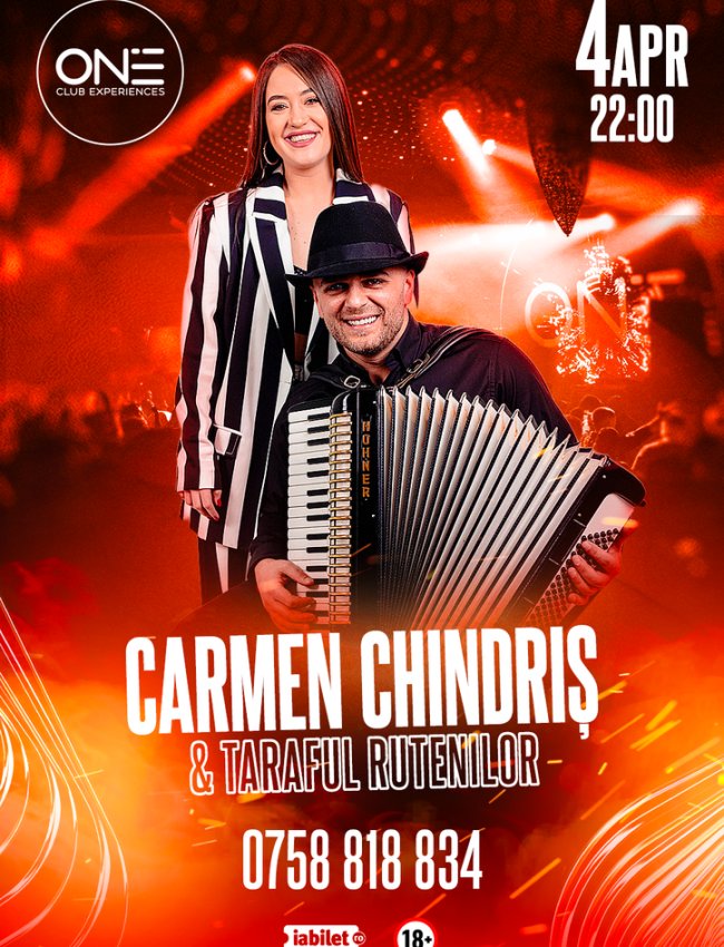 Evenimentul va fi o seară specială cu Carmen Chindris & Taraful Rutenilor la ONE Club, pe 4 Aprilie, începând de la ora 22:00. Te vei bucura de muzică live și de o experiență de neuitat.