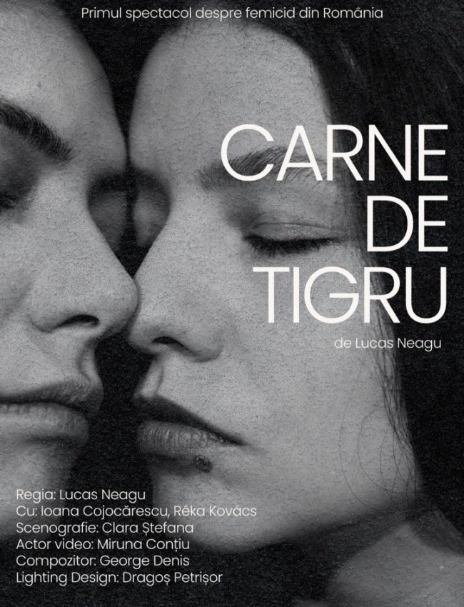 Carne de Tigru este un debut în dramaturgie și regie de teatru semnat de Lucas Neagu, un nume din noua generație de cineaști care vorbește deschis subiecte sociale actuale, incomode, dar necesare.