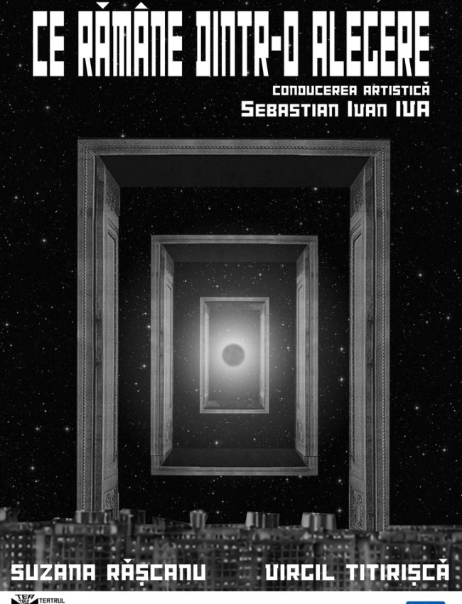 „CE RĂMÂNE DINTR-O ALEGERE” transformă aceste întrebări într-un spectacol construit din fragmente de viață care se repetă și se reconfigurează cu fiecare gest, cu fiecare întâlnire, cu fiecare alegere. Este o meditație poetică despre timp și fragilitatea iubirii, în care o singură relație se desface într-un joc al posibilităților infinite.