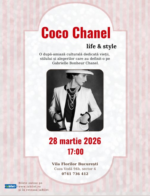 Descoperă viața și stilul Coco Chanel într-o după-amiază culturală alături de prieteni, familie sau partener.