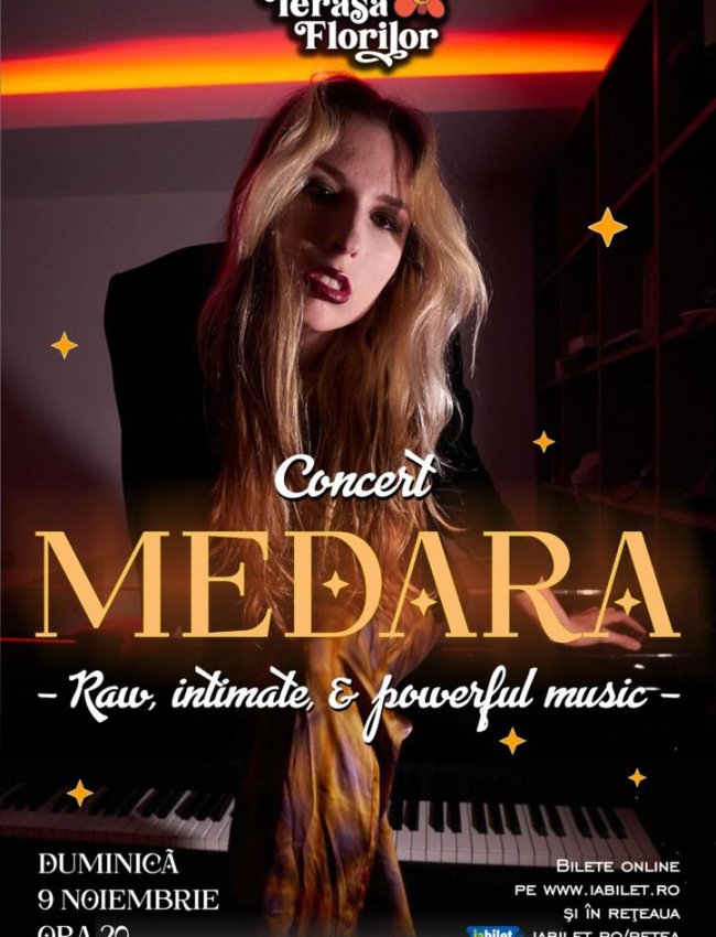 Așadar, vă așteptăm cu drag la Terasa Florilor la o seara de muzicā sinceră, puternică și plină de profunzime și sensibilitate cu MEDARA!