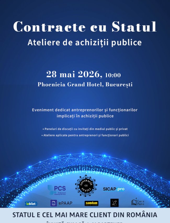 Evenimentul Contracte cu Statul – Ateliere de achiziții publice este conceput ca o zi de lucru dedicată antreprenorilor și funcționarilor implicați în achiziții publice, în care vom discuta despre modul în care funcționează sistemul, despre relația dintre autoritățile contractante și mediul privat și despre pașii pentru participarea la licitații publice.