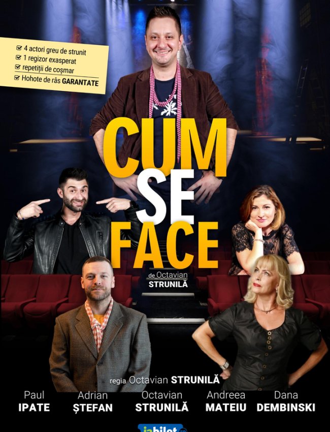 Spectacolul "Cum se face" are în distribuție pe: Dana Dembinski, Andreea Mateiu, Paul Ipate, Adrian Ștefan, Octavian Strunilă, și se dorește a fi o comedie pe gustul spectatorului de astăzi...