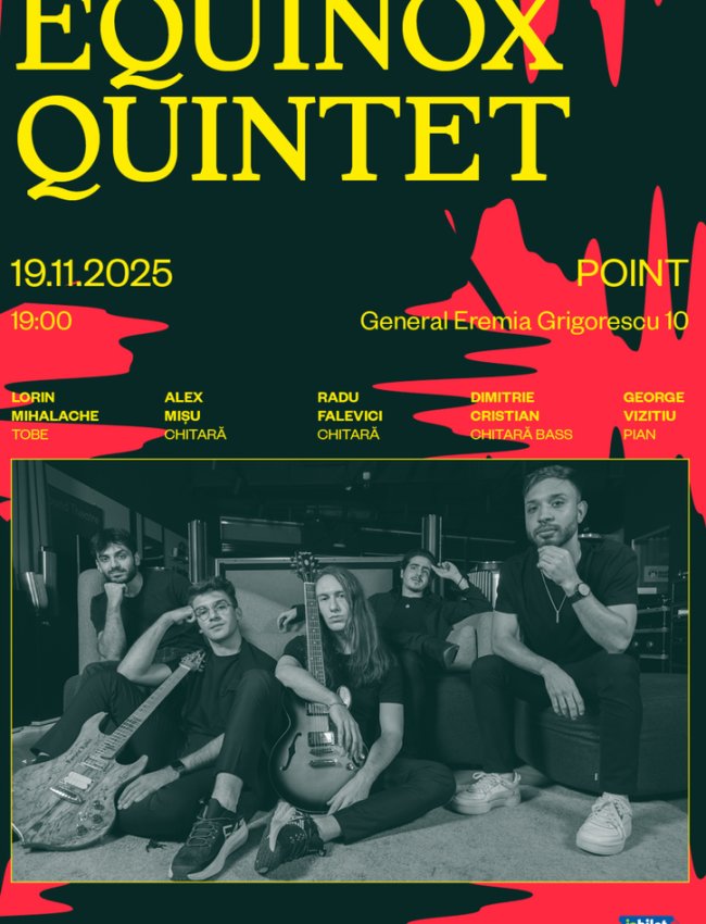 Pe data de 19 noiembrie vă invităm în cadrul stagiunii a PureJazz Sessions, găzduită de POINT, unde avem plăcerea deosebită de a vă prezenta material proaspăt marca Equinox, material care va conține piese pe care le vom cânta în premieră publicului larg și care vor face parte din albumul pe care ne dorim de foarte multă vreme să-l aducem la viața.