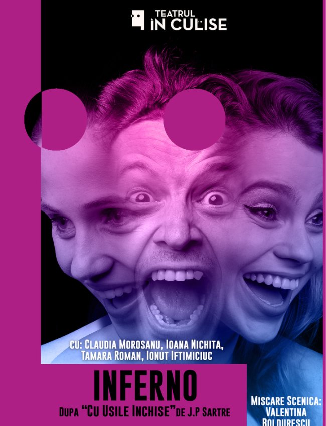 Bazat pe ideea centrală a existențialismului lui Sartre, spectacolul Inferno îți oferă o viziune diferită asupra vieții de după moarte: neputința de a scăpa de judecata celorlalți pare a fi în viziunea filosofului cea mai îngrozitoare tortură.