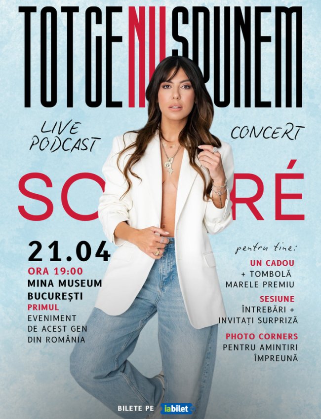 După o perioadă în care s-a concentrat pe alte proiecte creative, Sore revine pe scenă cu o abordare profund personală, în care muzica, emoția și dialogul direct cu publicul se îmbină natural. „Tot ce nu spunem” este un concept construit în jurul vulnerabilității și al curajului de a spune lucrurilor pe nume, oferind spectatorilor o perspectivă sinceră asupra trăirilor și experiențelor artistei.