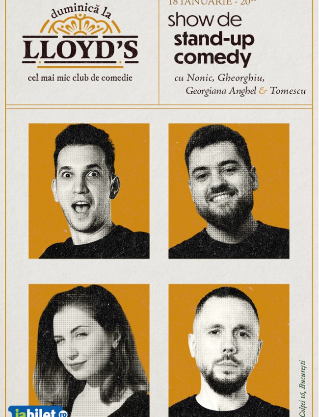 Lloyd's: Stand-up comedy cu Bogdan Nonic, Călin Gheorghiu, Georgiana Anghel și Marius Tomescu