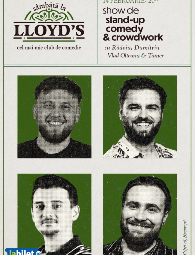 Lloyd’s: Stand-up și crowdwork cu Edi Rădoiu, Gabriel Dumitriu, Vlad Olteanu și Tamer
