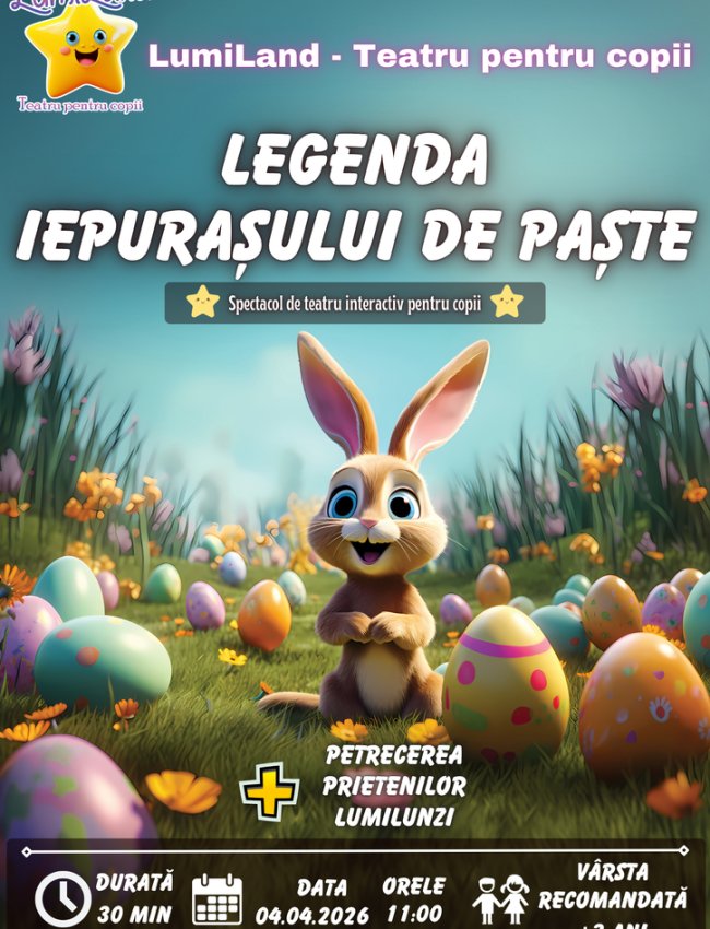 Asigură-ți locul în această călătorie extraordinară și pregătește-te să trăiești momente de neuitat alături de noi la "Legenda Iepurașului de Paște”!