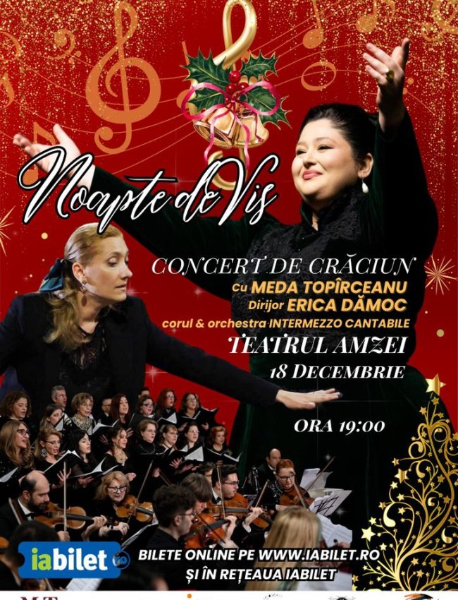 Pe scenă va urca mezzosoprana, actrița și prezentatoarea TV Meda Topîrceanu, acompaniată de dirijoarea Erica Dămoc, sub a cărei baghetă va performa formația vocal-instrumentală Intermezzo Cantabile.