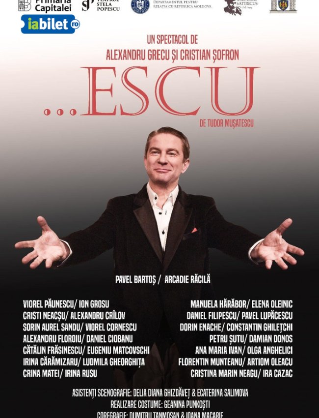 Spectacolul „…Escu” este pus în scenă de echipele artistice reunite ale Teatrului „Stela Popescu” și Teatrului Național „Satiricus Ion Luca Caragiale”, într-o colaborare unică în peisajul teatral autohton, cu siguranţă de bun augur pentru viitorul relaţiilor culturale dintre cele două capitale – București și Chișinău.