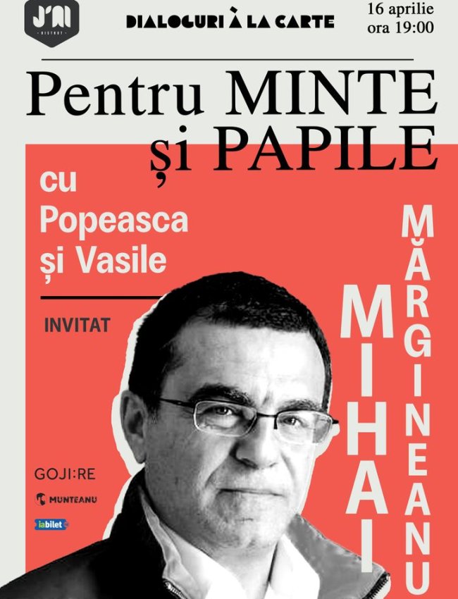 Despre MIHAI cel de dincolo de muzician și actor de comedie avem ocazia să aflăm în noul episod “PENTRU MINTE ȘI PAPILE cu Popeasca și Vasile”. Omul care, în copilărie, visa să devină... musafir își împlinește visul pe 16 aprilie, de la ora 19:00. Îl așteptăm în “sufrageria” J’ai Bistrot, unde vă așteptăm și pe voi, pentru o porție consistentă și savuroasă de vorbe și râs. Locurile sunt limitate (primul episod a fost sold-out în câteva zile), așa că vă sfătuim prietenește să intrați pe iaBilet.