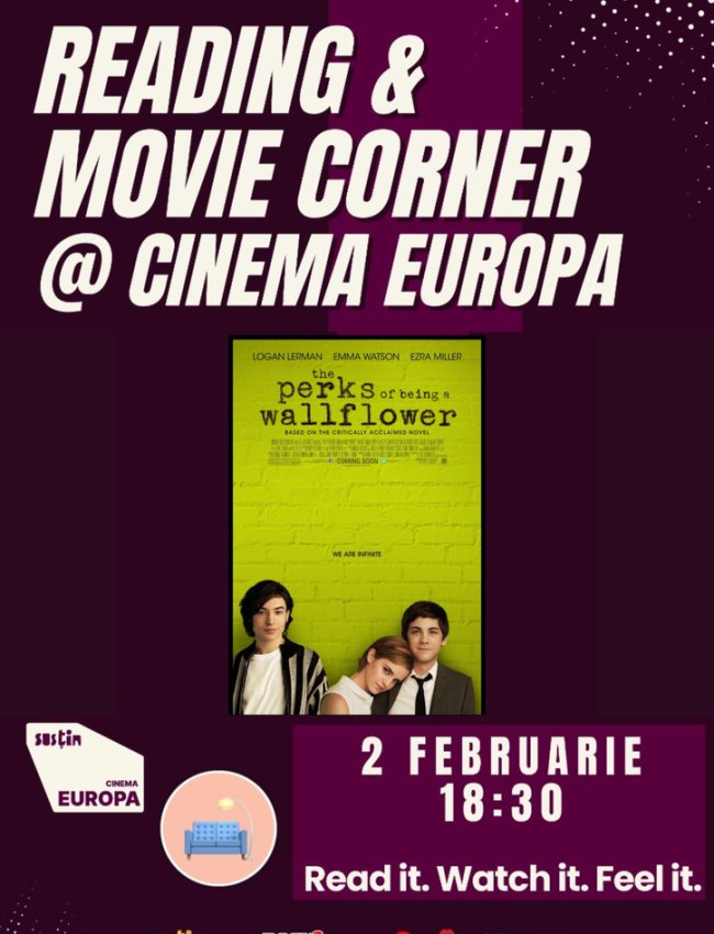 Program: De la 19:00 - citim împreună, fiecare cu propria carte preferată De la 20:00 - proiecția specială de luni, The perks of being a wallflower (2012, 13+) Adu-ți cartea preferată, citește cu noi.