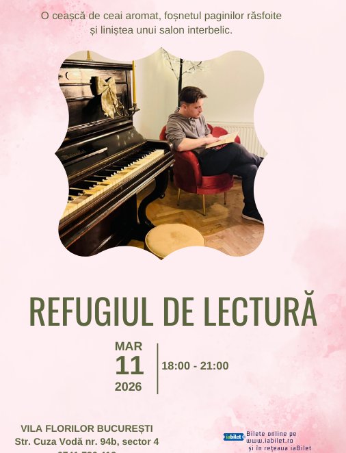 Refugiul de Lectură este o întâlnire dedicată cititului în liniște, într-un salon interbelic din București, la Vila Florilor.