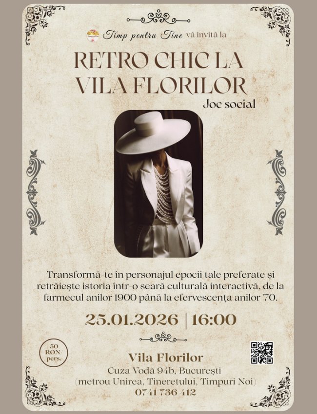 Retro Chic la Vila Florilor se adresează adulților care caută un tip de seară diferit de o petrecere obișnuită sau de un eveniment pasiv. Este un joc de relații și contexte, trăit între oameni care acceptă să intre, pentru câteva ore, într-o altă epocă.