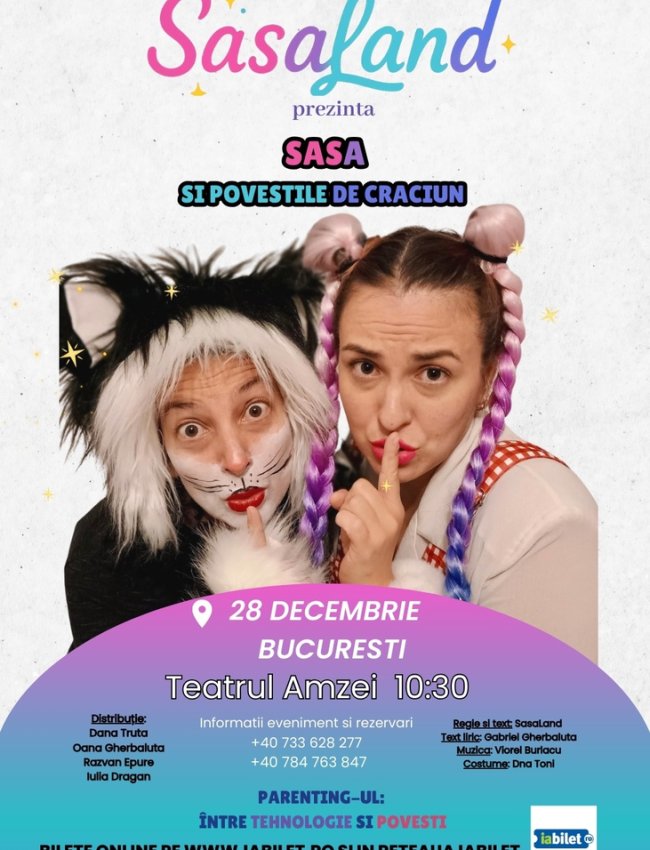 Acest spectacol este începutul unui șir de spectacole ce o au ca protagonista pe micuța Sasa, fetita de 8 ani, care îi va lua pe copii într-o serie de aventuri, purtandu-i intr-o lume magica, a povestilor, construita chiar de tatal ei.