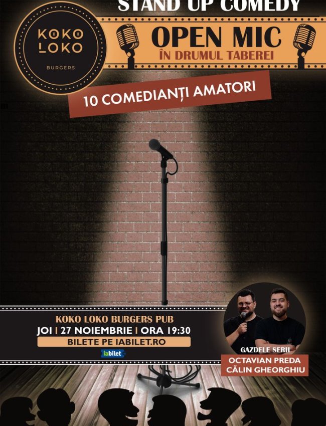 Zece comedianți vor încerca glume, iar tu te relaxezi la o bere cu prietenii și râzi când este cazul:)
