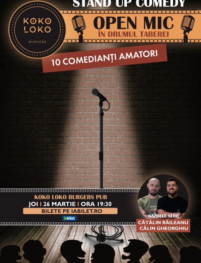 Zece comedianți vor încerca glume, iar tu te relaxezi la o bere cu prietenii și râzi când este cazul:)