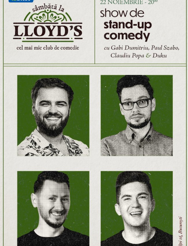 Ia-ți prietenii și vino la Lloyd's Comedy Club pentru o seară plină de glume bune și multe râsete.