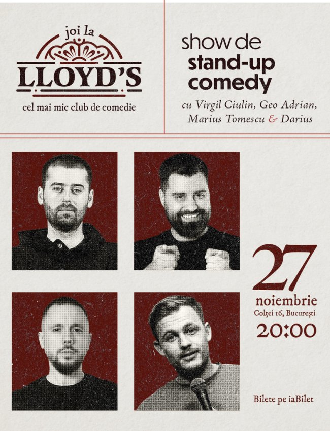 Ia-ți prietenii și vino la Lloyd's Comedy Club pentru o seară plină de glume bune și multe râsete