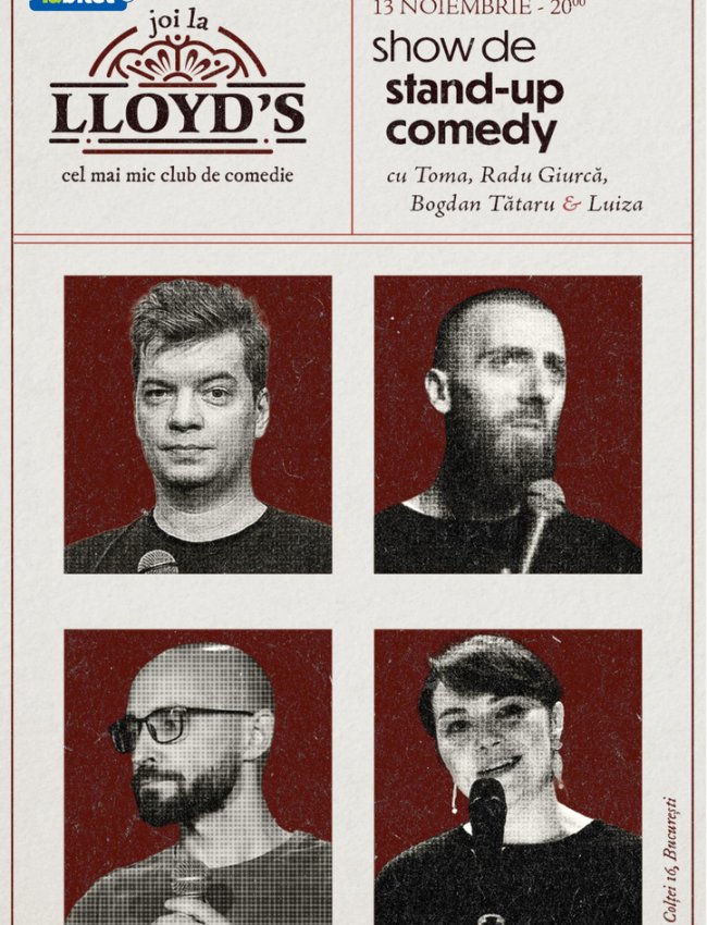 Ia-ți prietenii și vino la Lloyd's Comedy Club pentru o seară plină de glume bune și multe râsete.