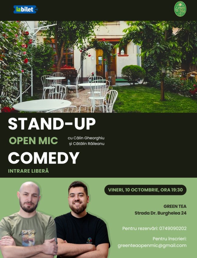 P.S: Dacă crezi că reziști 5 minute să ne spui glume, te poți înscrie pe greenteaopenmic@gmail.com
