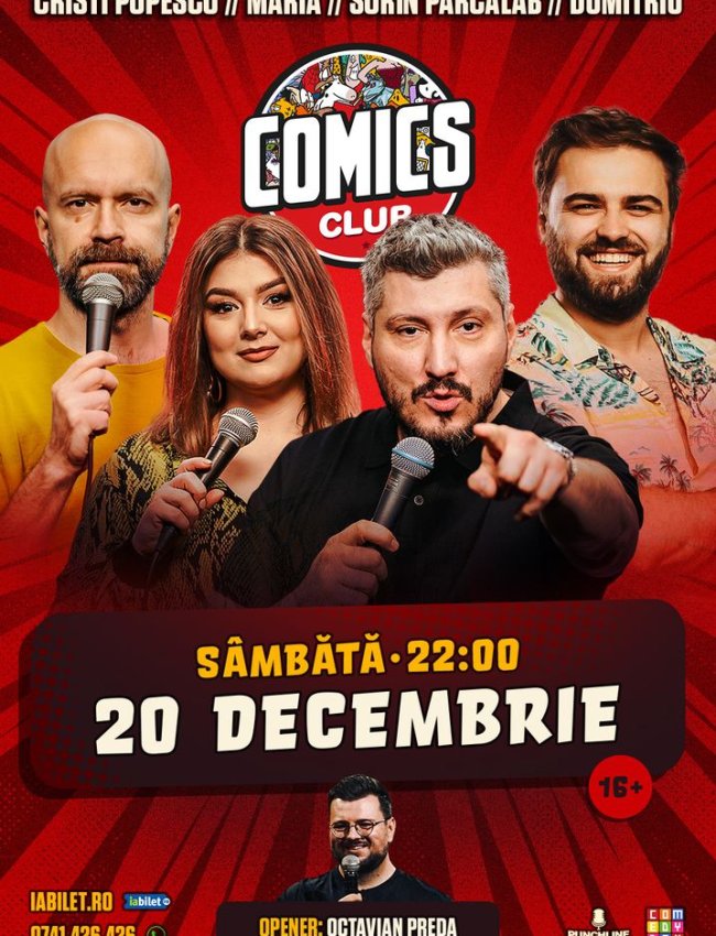 Stand-up cu Cristi Popesco, Maria Popovici, Sorin Pârcălab și Gabriel Dumitriu la ComicsClub!