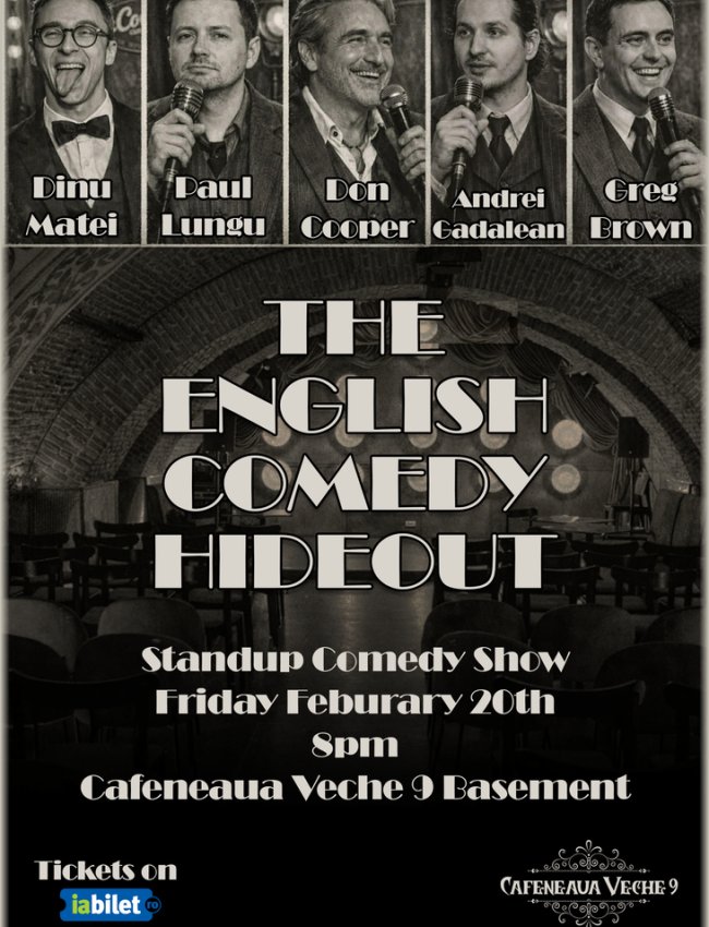 If you understand English you have to come see us on Friday, February 20th for The English Comedy Hideout - a standup comedy show for all English language lovers in Bucharest! Like a standup speakeasy for one night only, 5 local and international comedians, all with different backgrounds and styles all performing hilarious material in English. Our seats are limited! So grab a few friends, get your tickets now, and head to the basement of Cafeneaua Veche 9 on February 20th.