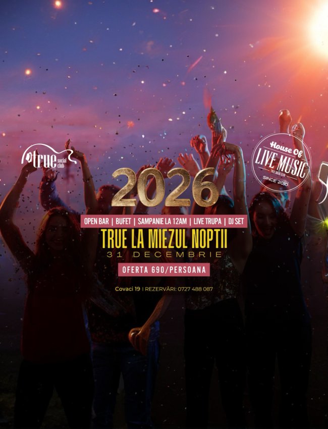 Totul se întâmplă la True Club, în inima Centrului Vechi — acolo unde fiecare Revelion devine o amintire legendară.