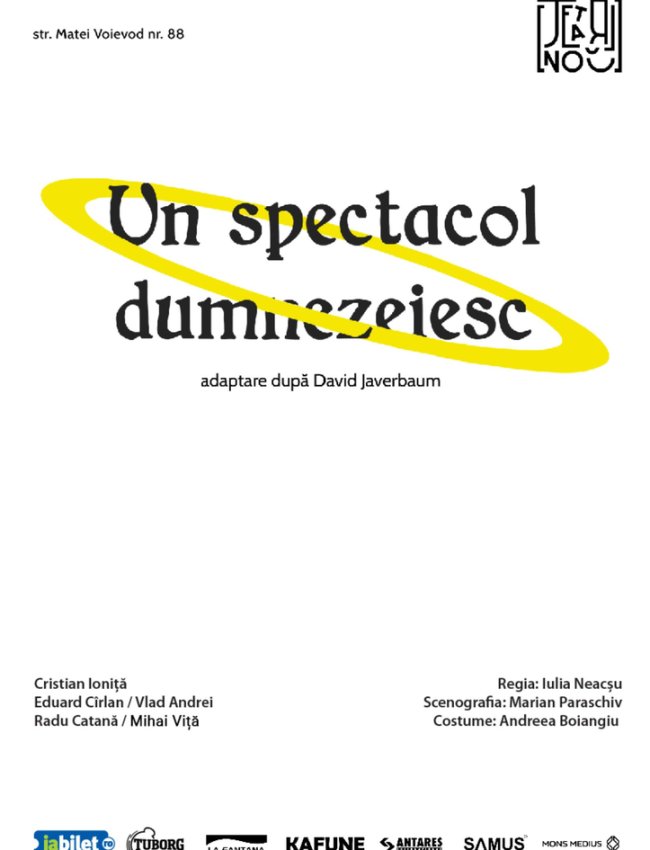 Din respect pentru actori și spectatori, vă rugăm ca, în timpul spectacolului, să țineți telefoanele închise, pe modul Avion sau  Silențios și să păstrați liniștea.