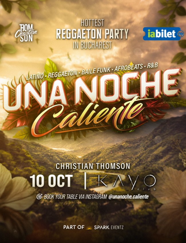 O energie mai intensă ca niciodată, într-o experiență marca Una Noche, gata să cucerească corazón-ul tuturor iubitorilor de distracție și reggaeton! Vom dansa toată seara pe cele mai iubite melodii ale lui J Balvin, Daddy Yankee, Shakira, Maluma, Spice si muuulți alții, într-o călătorie epică spre țările calde