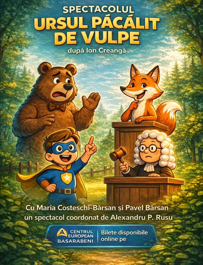 Spectacolul aduce pe scenă una dintre cele mai iubite povești ale copilăriei, într-o adaptare interactivă, plină de umor și energie. Copiii devin parte din acțiune, ca niște mici super-eroi care decid cine are dreptate – ursul păcălit sau vulpea șireată?