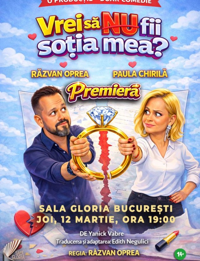 “Vrei să NU fii soția mea?” este o comedie despre criza de vârstă, orgoliu, dorință și libertate în cuplu — cu replici rapide, tensiune amoroasă inteligentă și un final care arată cât de subțire e linia dintre “ne despărțim” și “începem din nou”. (Și cât de periculos este să implici prietenii…)